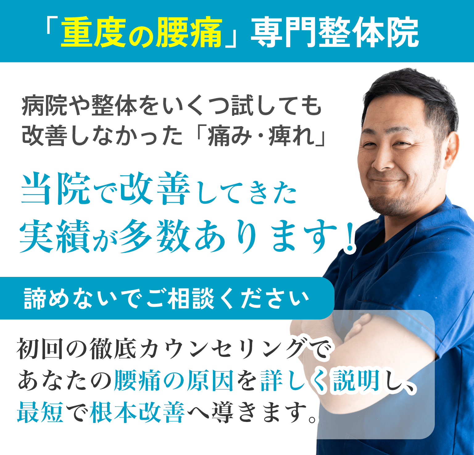 当院は「その場しのぎ」ではなく、「もう腰痛を繰り返さない状態を目指す施術」を提供しています。