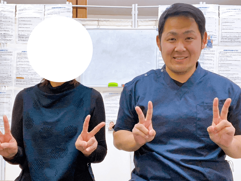本人のコメント 毎回とても丁寧に施術・指導をしていただきありがとうございました。施術のたびに自分でできるストレッチも教えていただき、自分でケアできるようになったのが心強かったです。体に痛みがないことが、これほど幸せなことだと改めて実感しました。